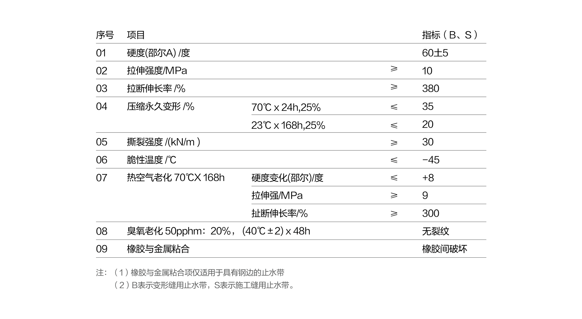 在工程的建筑设计中,由于混凝土不能连续浇注,或由于地基变形,或由于温度变化引起的混凝土构件热胀冷缩等原因,需留有施工缝、沉降缝、变形缝,在这些缝处必须安装橡胶止水带,以防止水的渗漏。橡胶止水带既能防止地下水(或外界水)渗漏到建筑结构中,又可以防止建筑内的水漏到外界。